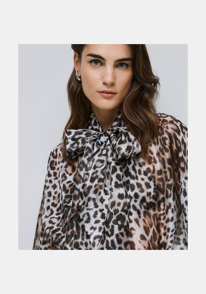 Access Fashion Μπλούζα λεοπάρ με δετό λαιμό 54-2197-268
