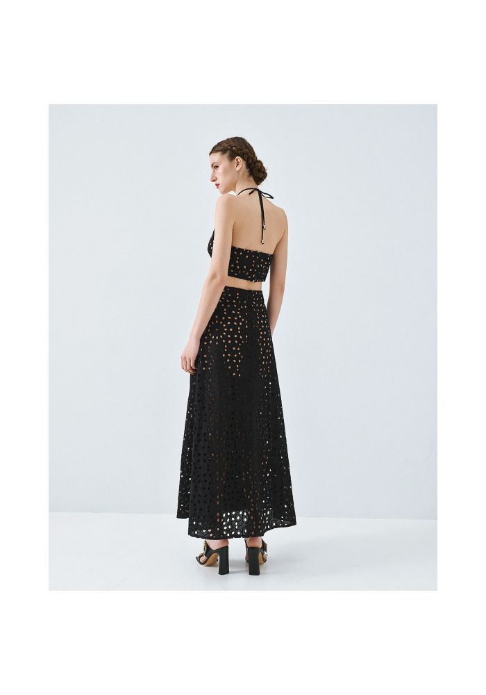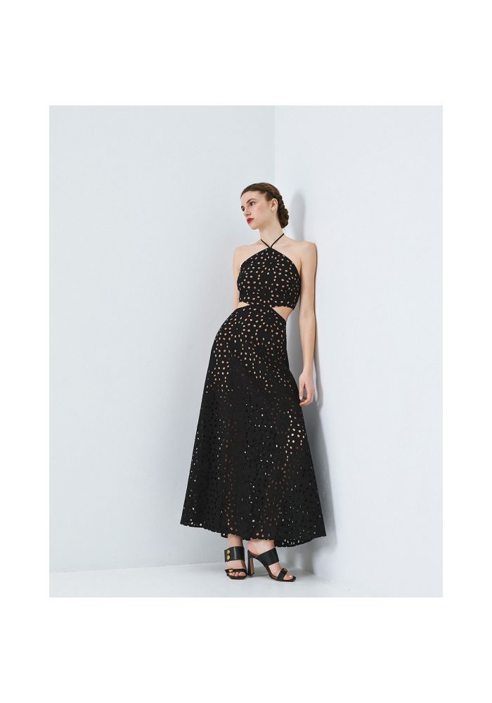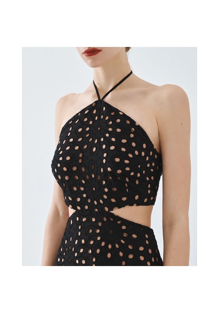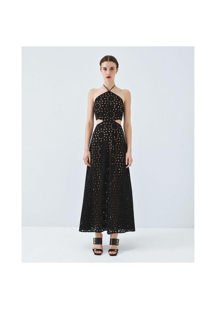 Μάξι φόρεμα μπροντερί με halter λαιμόκοψη και cut-out λεπτομέρεια. Διαθέτει δέσιμο πίσω στον λαιμό με κορδόνια, ενσωματωμένη φόδρα και κλείσιμο με φερμουάρ στο πίσω μέρος.