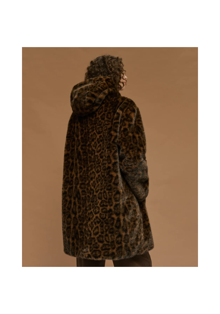 Μακρύ τζάκετ διπλής όψης με πλαϊνές τσέπες. Διαθέτει συνθετική γούνα με λεοπάρ μοτίβο στη μία πλευρά, κουκούλα με κορδόνια προσαρμογής και κλείσιμο με φερμουάρ μπροστά. Ιδανική επιλογή για στιλάτα all-day looks.