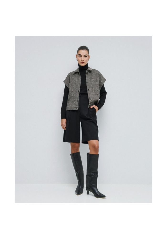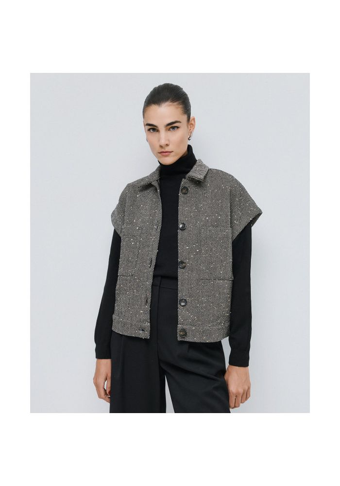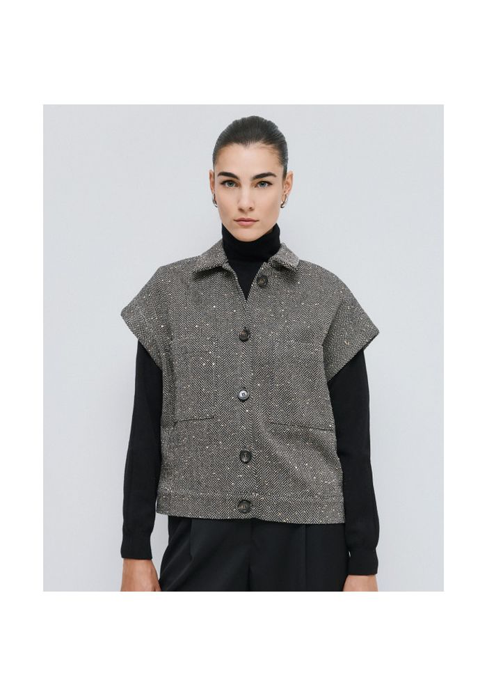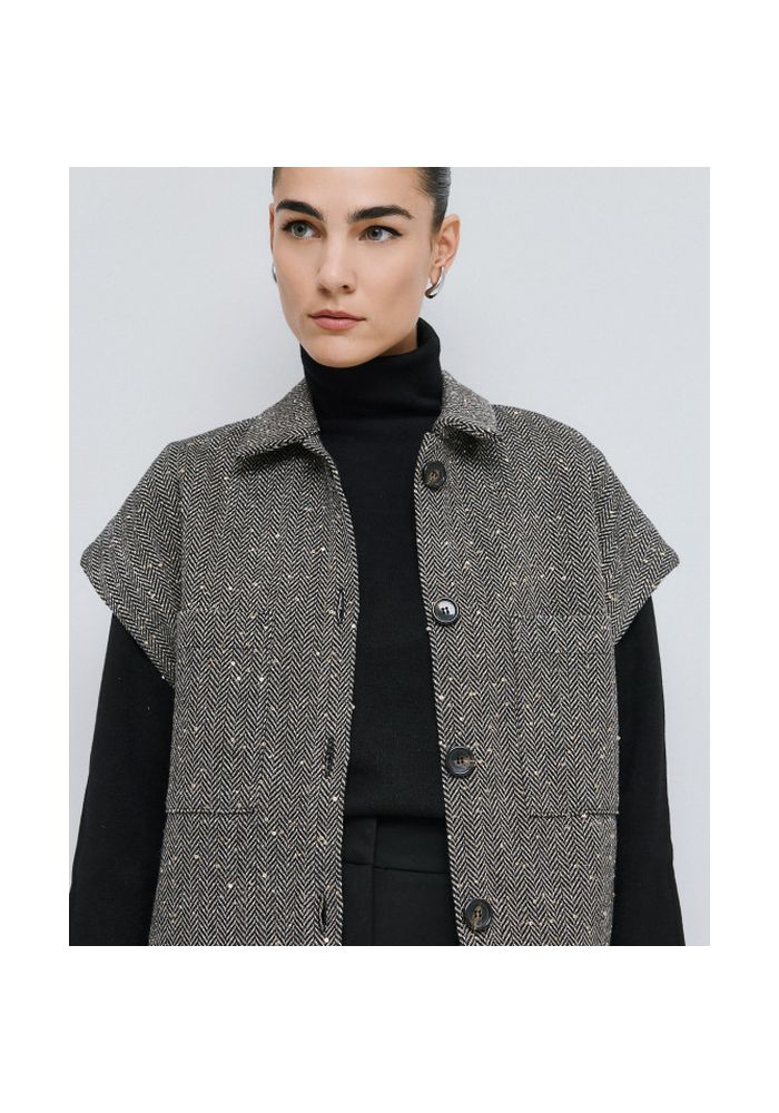 Κοντό τζάκετ ψαροκόκαλο με πούλιες και patch τσέπες. Διαθέτει γιακά και κλείσιμο με κουμπιά μπροστά. Ιδανική επιλογή για να αναβαθμίσετε τα all-day looks σας με κομψότητα.