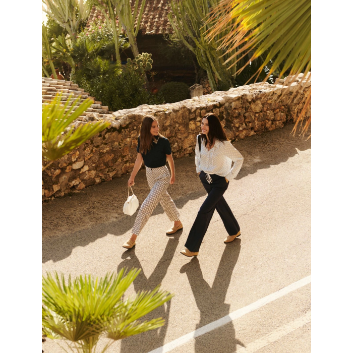 Ετοιμαστείτε για τη ζεστή εποχή με αυτά τα εκλεπτυσμένα και ευέλικτα φαρδιά παντελόνια. Το γεωμετρικό σχέδιο προσθέτει μια ξεχωριστή πινελιά για ένα μοναδικό και άμεσα αναγνωρίσιμο τελικό αποτέλεσμα.