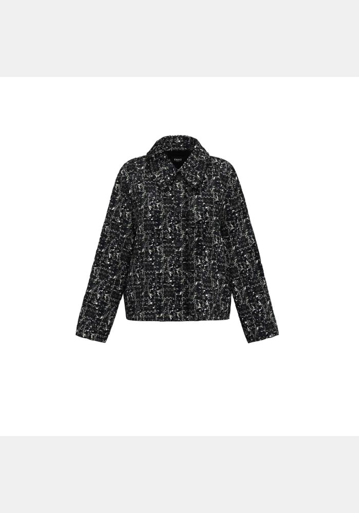 Σακάκι "Frank" από υφαντό μαλλί με νήμα lurex και κεντημένες παγιέτες που τραβούν το φως. Ίσια γραμμή με γιακά πουκαμίσου και μονόπετο κλείσιμο με κουμπιά. Εντοιχισμένες πλαϊνές τσέπες και φόδρα. Ένα γυναικείο σακάκι που συνδυάζει κομψότητα και λάμψη για μια σύγχρονη αστική εμφάνιση.