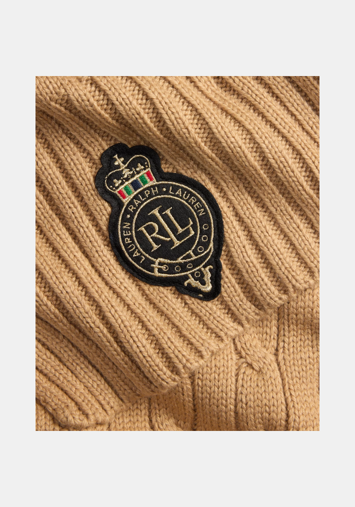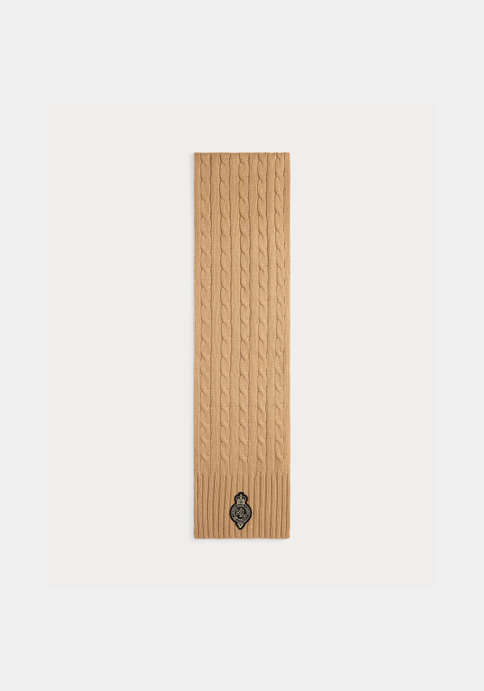 Ένα απαραίτητο αξεσουάρ για την κρύα εποχή, αυτό το άνετο κασκόλ διαθέτει πλεκτή σιλουέτα διακοσμημένη με το χαρακτηριστικό έμβλημα της Lauren.