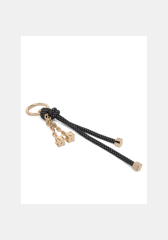 Αναβαθμίστε την καθημερινή σας τσάντα μεταφοράς με αυτό το γούρι τσάντας γεμάτο προσωπικότητα. Ένα έντονο δαχτυλίδι κρέμεται από χρυσές αλυσίδες με τα αρχικά “MK”, καθώς και από ένα στικτό κορδόνι για μια πινελιά λευκού. Συνδέστε το με τα πάντα, από κομψές τσάντες μέχρι κομψές τσάντες χιαστί.