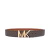 MICHAEL KORS Ζώνη δερμάτινη διπλής όψης 32mm. Διαθέτει χρυσή στρογγυλή αγκράφα λογότυπο Michael Kors. Η πρώτη όψη είναι γαλάζια λογότυπο και η δεύτερη όψη ταμπάς λογότυπο.