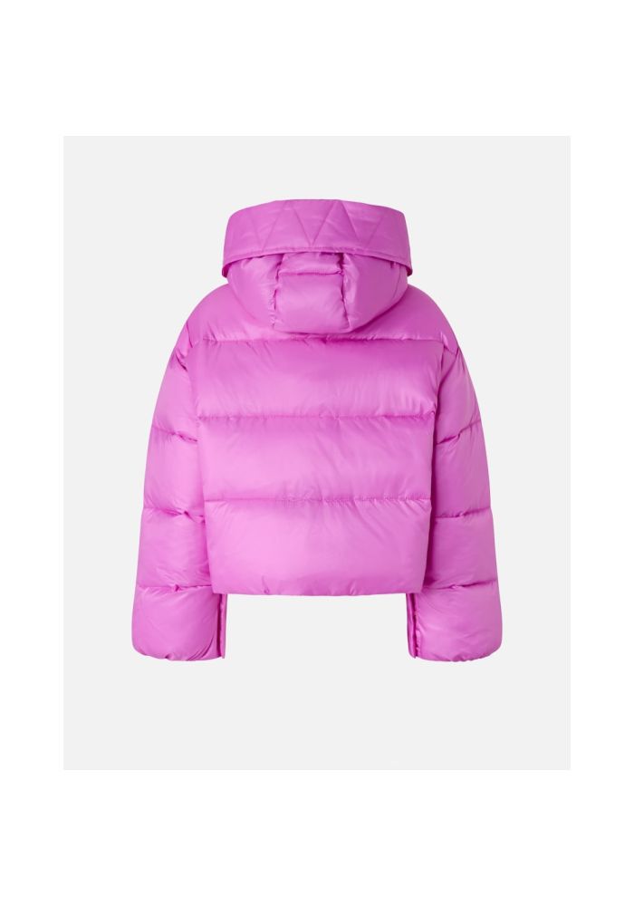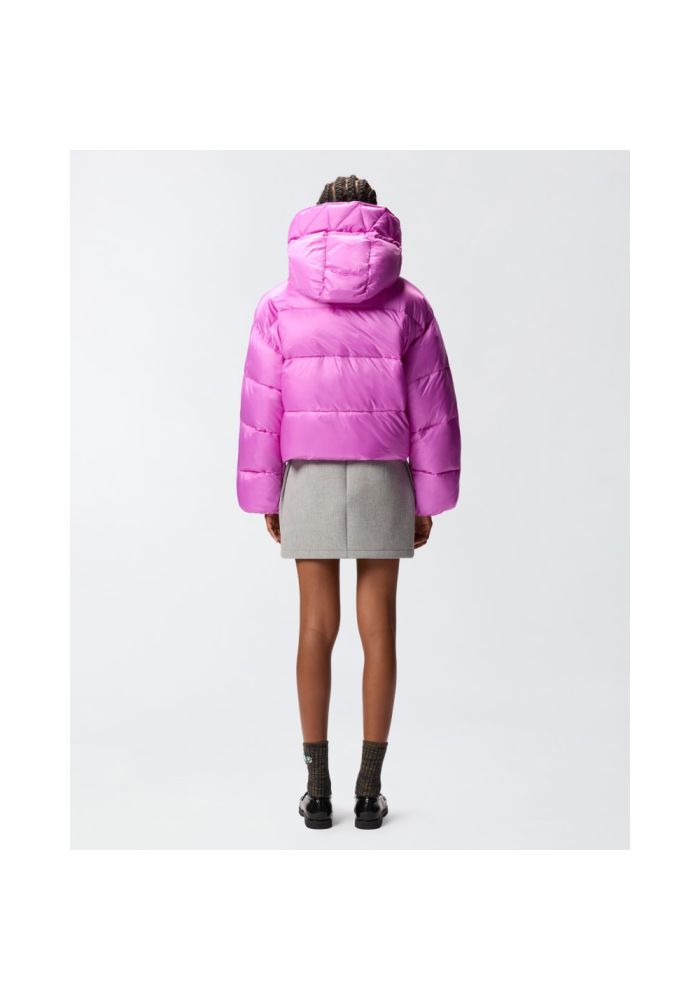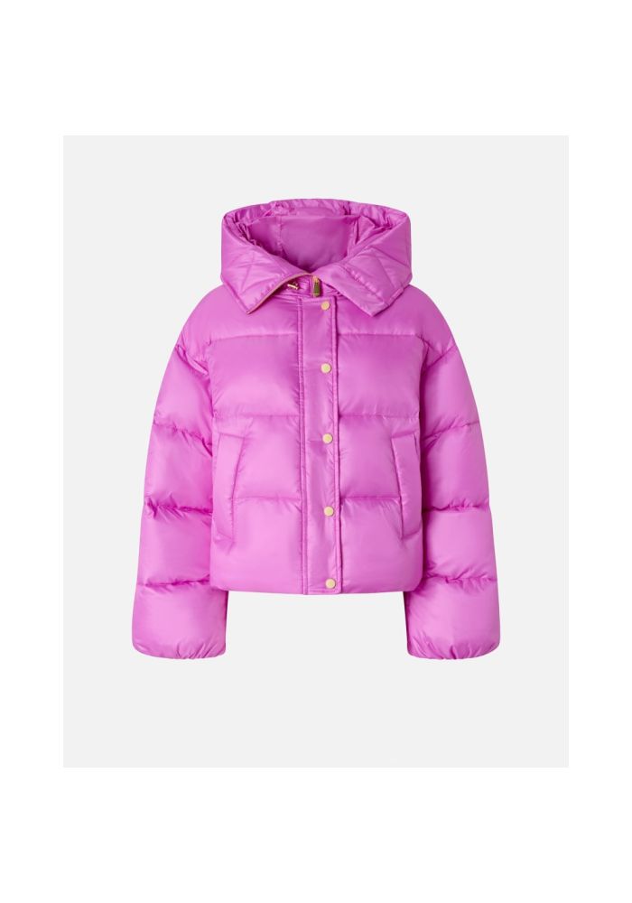 Φουσκωτό μπουφάν από τεχνικό ύφασμα με ιδιαίτερο ημιγυαλιστερό φινίρισμα και γέμισμα εσωτερικά. Διαθέτει φαρδιά κουκούλα που αγκαλιάζει τον λαιμό και ρυθμίζεται με κορδόνι και βολικές κάθετες τσέπες με φιλέτο. Κλείσιμο με μεταλλικά κουμπιά-σούστες. Η κοντή γραμμή του μπουφάν το κάνει το ιδανικό πανωφόρι για κάθε μέρα, τις πρώτες κρύες ημέρες του χειμώνα.