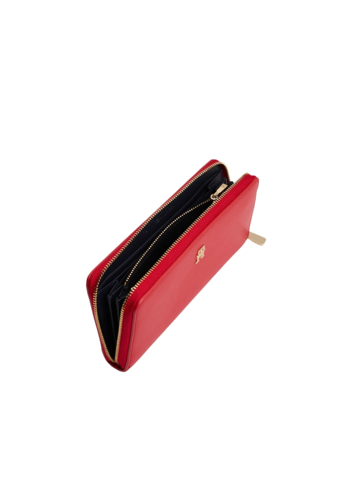 Γυναικείο πορτοφόλι από την εταιρία Tommy Hilfiger. Διαθέτει ματ φινίρισμα και κλείσιμο με φερμουάρ περιμετρικά. Έχει δύο κύριες θήκες, μία θήκη με φερμουάρ και εσωτερικές θήκες για κάρτες. Το λογότυπο Tommy Hilfiger είναι ανάγλυφο στο εσωτερικό και υπάρχει πλακέτα με το μονόγραμμα TH στο μπροστινό μέρος.