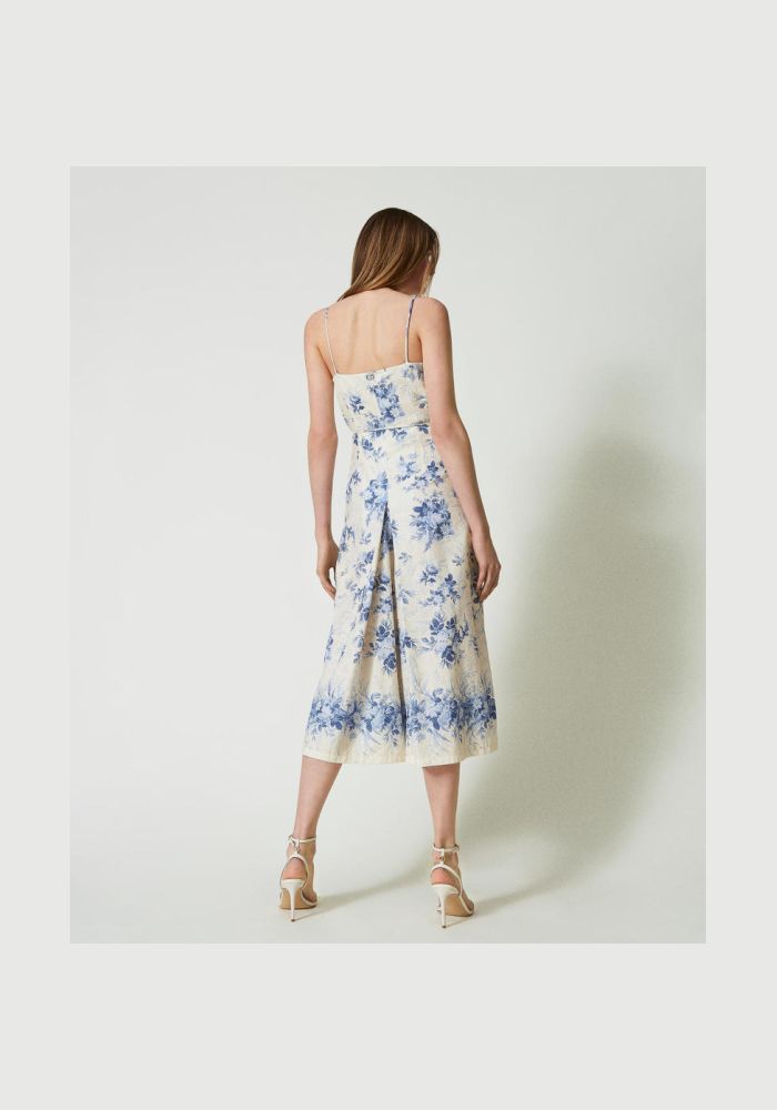 TWINSET Ολόσωμη φόρμα από λινό με φλοράλ στάμπα 11679 Ivory Toile de Jouy / Blue Calcedonie Print 241TT2420