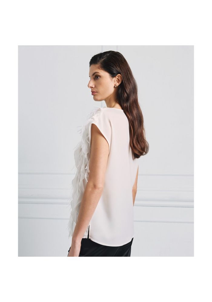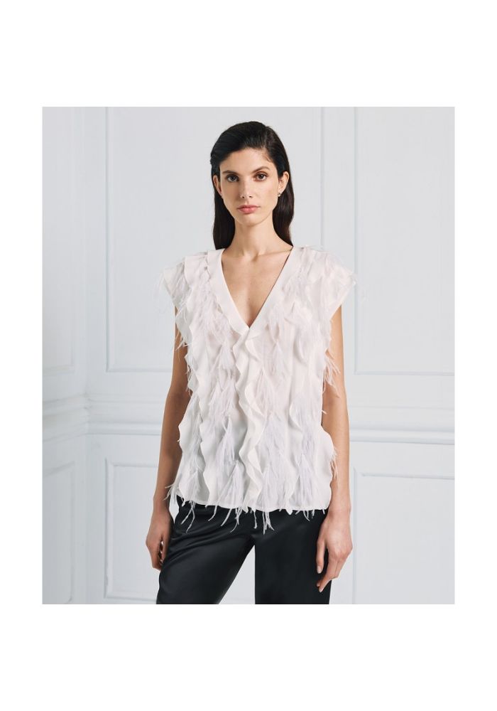 Access Fashion Μπλούζα αμάνικη με βολάν και πούπουλα 53-2112-307