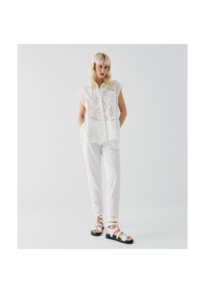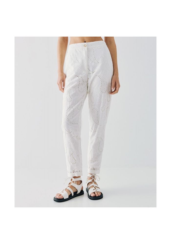 Access Fashion Παντελόνι ψηλόμεσο broderie WHITE 53-5117-795