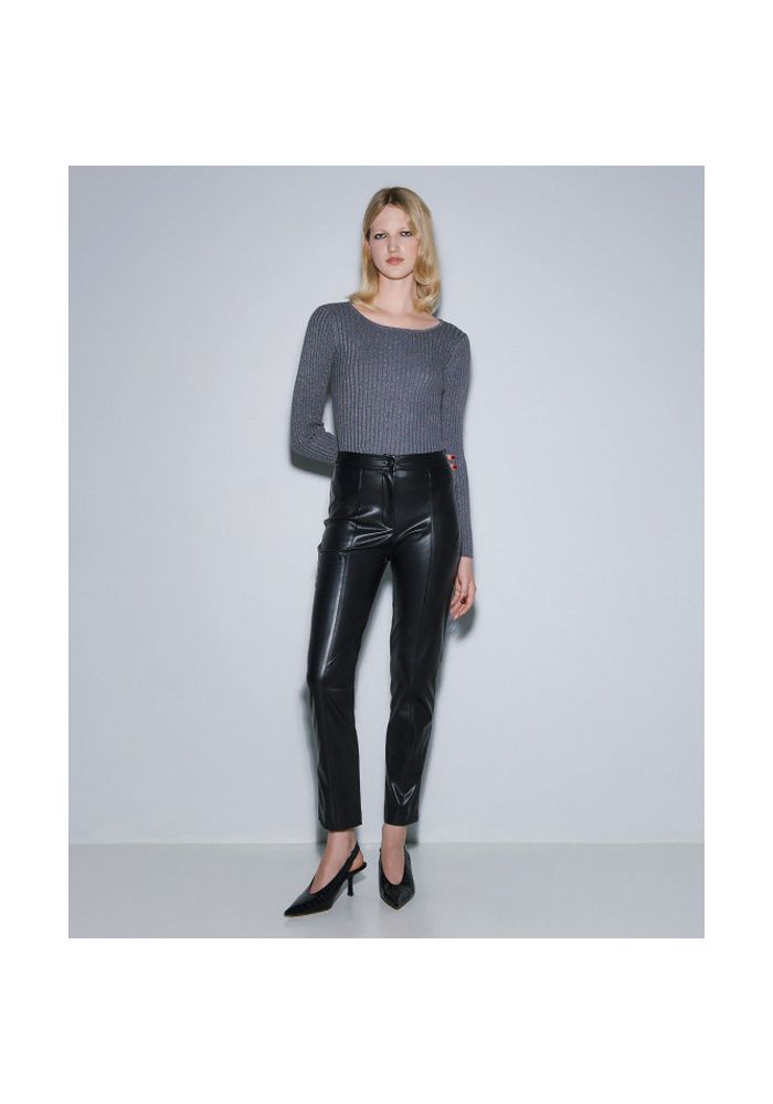 Access Fashion Παντελόνι ψηλόμεσο όψης δέρματος 54-5056-239