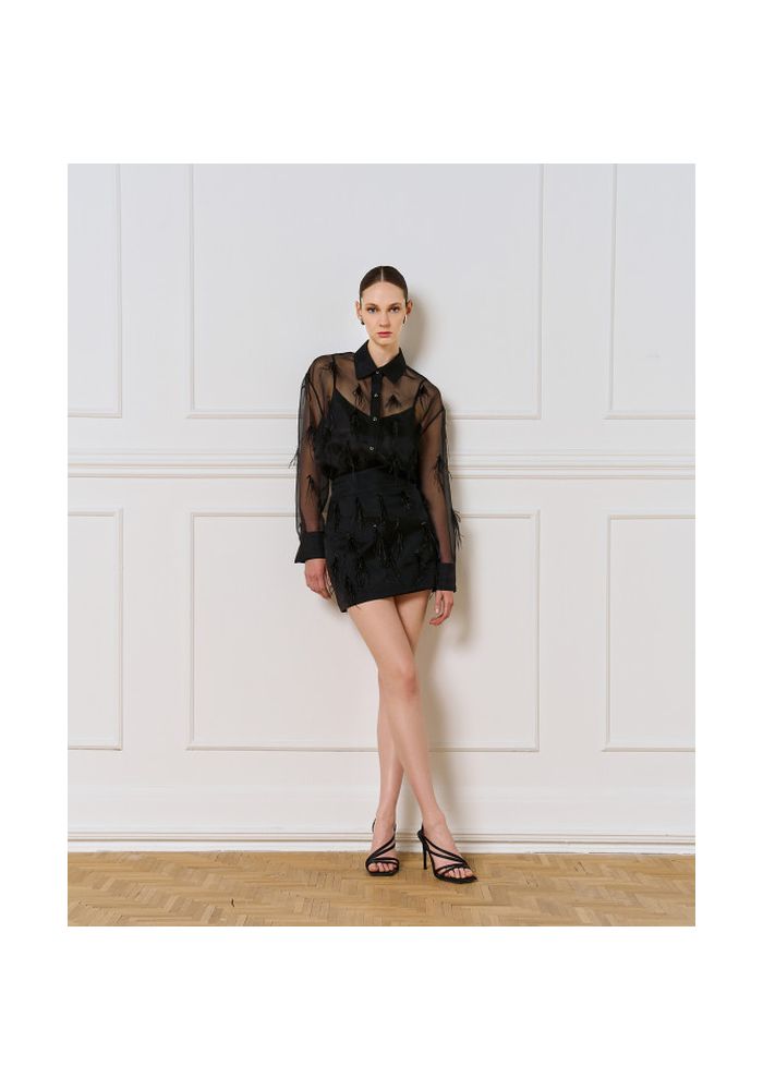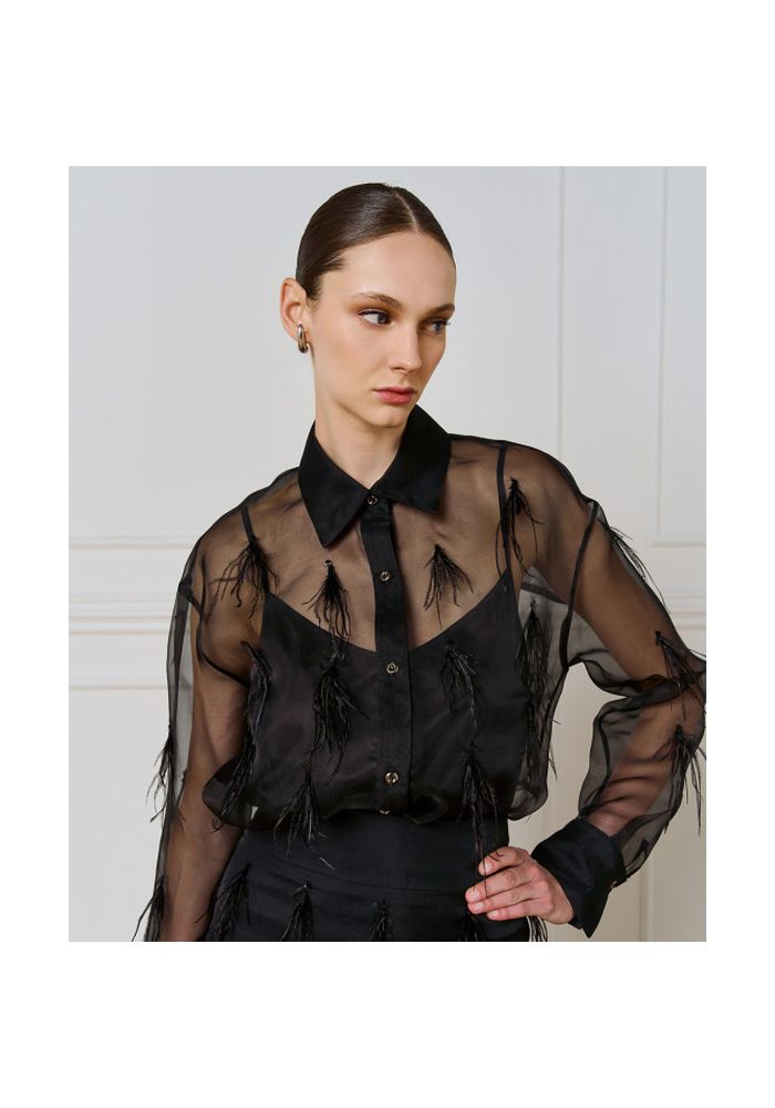 Access Fashion SPELL Πουκάμισο με πούπουλα Black 54-7023-554