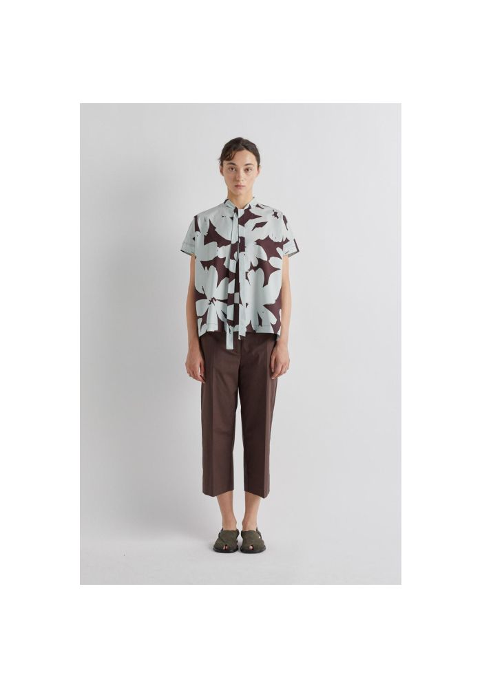 Μπλούζα κιμονό με κορδέλα για δέσιμο στον λαιμό, κοντά μανίκια, χαλαρή εφαρμογή και σκισίματα στα πλαϊνά.