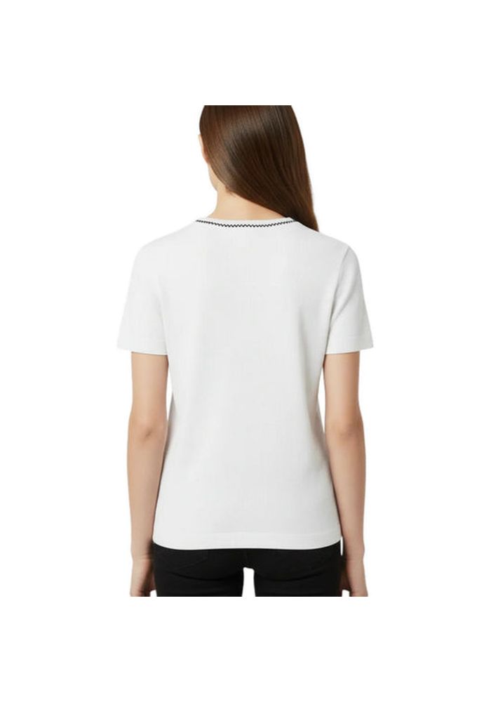 Κοντομάνικο t-shirt από καθαρό βαμβακερό ριμπ ζέρσεϊ ύφασμα με στρογγυλή λαιμόκοψη. Χαρακτηρίζεται από γαζιά διαφορετικού χρώματος στο περίγραμμα της λαιμόκοψης καθώς και από ένα κέντημα στο στήθος, επίσης διαφορετικού χρώματος, με το λογότυπο Love Birds σε καουμπόικο στυλ. Πρακτικό, πρωτότυπο και με μοναδικό στυλ: αυτό το t-shirt θα γίνει πραγματικό πασπαρτού.