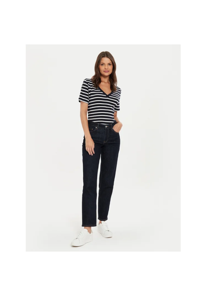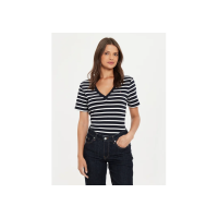 Tommy Hilfiger Κοντομάνικη ριγέ μπλούζα με V λαιμόκοψη WW0WW40584 02C