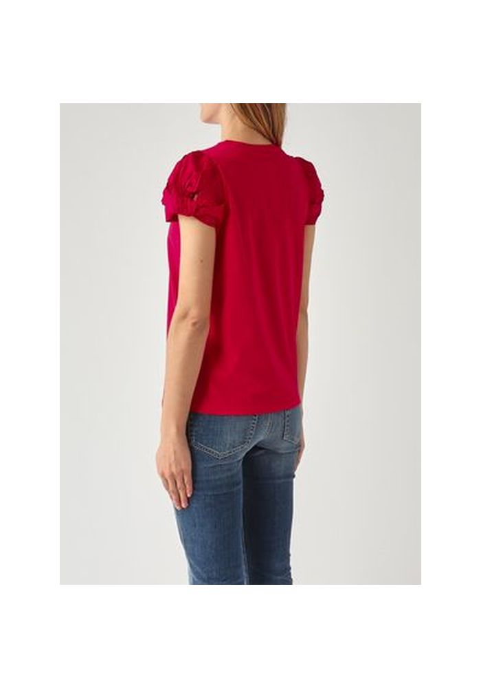 Κατασκευασμένο από απαλό, κόκκινο βαμβακερό ζέρσεϊ, αυτό το μπλουζάκι με κλασική λαιμόκοψη και κανονική εφαρμογή, ξεχωρίζει για τα εντυπωσιακά φουσκωτά μανίκια του.