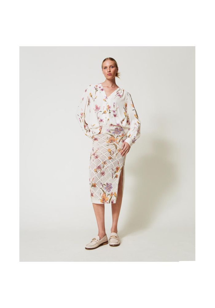 TWINSET Πλεκτή Midi floral φούστα 251TP3631-12329-Multi/Mother of Pearl