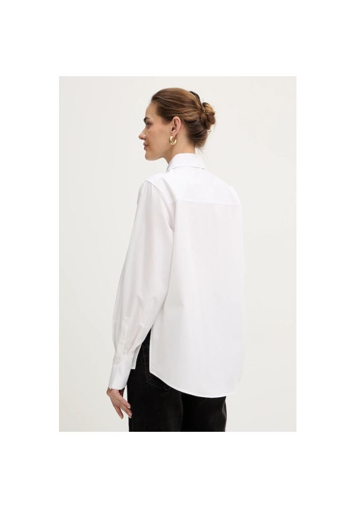 "KARL LAGERFELD T-shirt with buttons written KARL B1W11012100" T-shirt made of organic cotton poplin with high-pitched hooks and gold buttons with buttons. The horizontal seams separated by buttons enhance its modern, ripped finish.