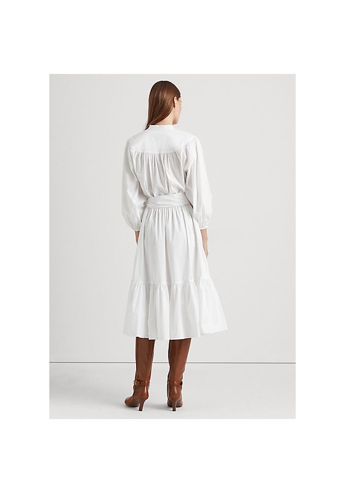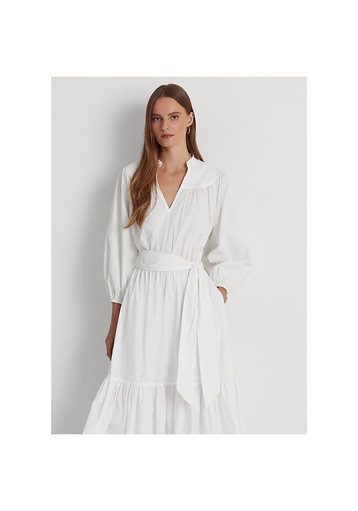 Lauren Ralphlauren dress Cotton-blend blouson-sleeve dress 250889364001 White