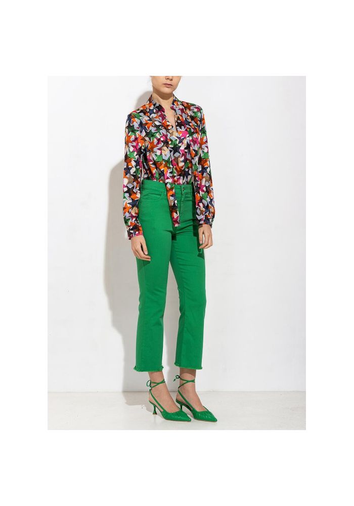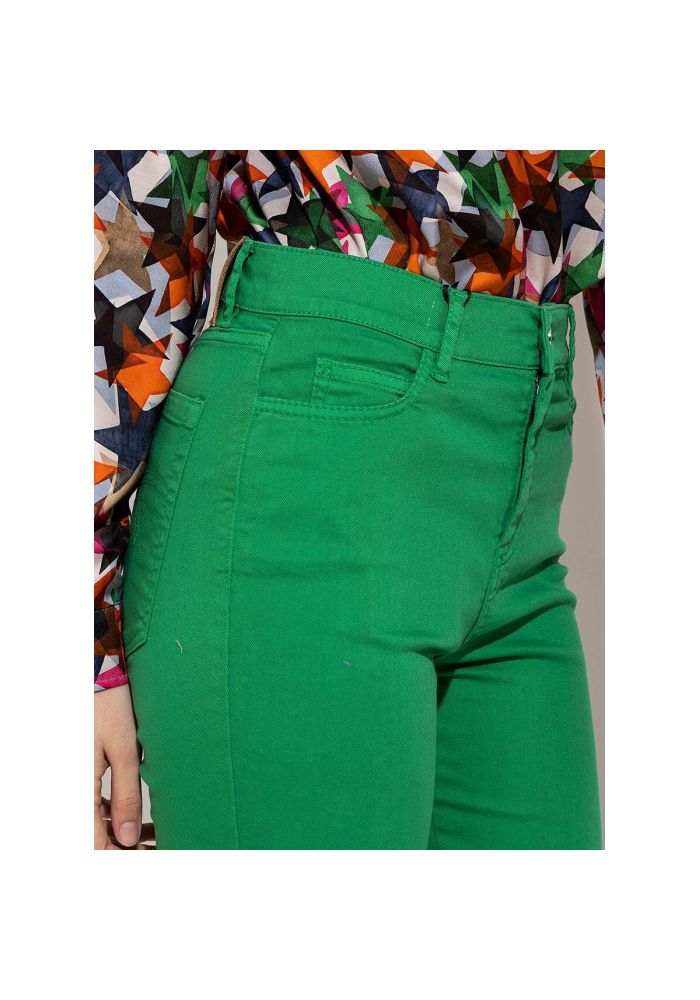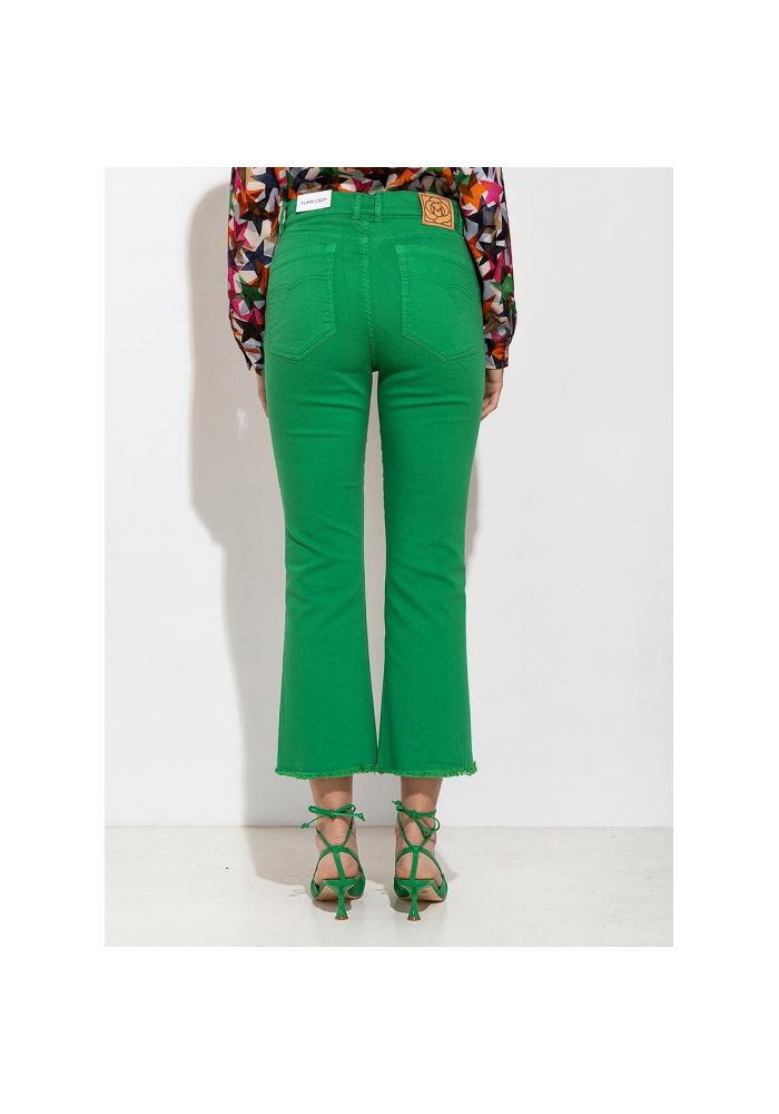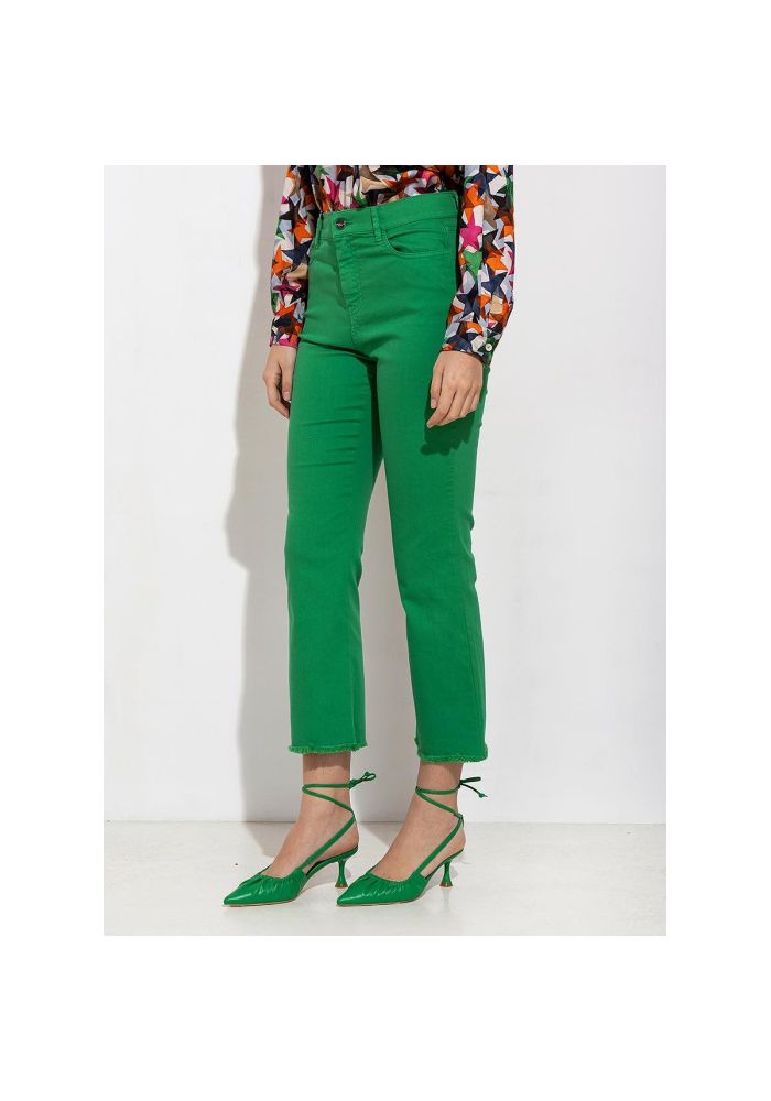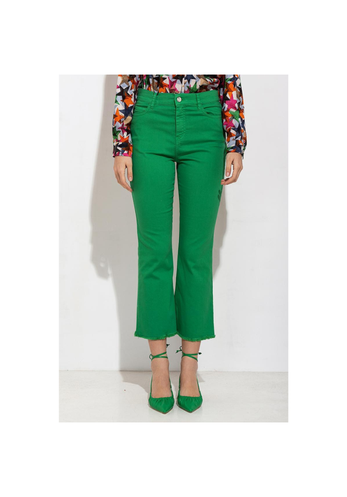 Marella γυναικείο παντελόνι cropped OLPE 2331310334 002 GreenΤζιν cropped με πέντε τσέπες σε βαμβακερό ελαστικό, flare γραμμή. Μέση μέση, κλείσιμο με κουμπί και κρυφό φερμουάρ. Πάτος με κρόσσια.