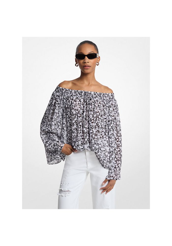 Michael Kors floral μπλούζα off-shoulder με μακριά μανίκια. Συνδυάστε αυτό το αέρινο τοπ με ένα λευκό παντελόνι ή τζιν. Διαθέτει κορδόνι και λάστιχο. Με φόδρα στο εσωτερικό. Σύνθεση: 100% πολεστέρας.