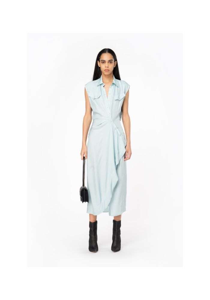 PINKO φόρεμα αμάνικο σεμιζιέ ασσύμετρο AMITYVILLE 103514 A1WU E68 Light blue