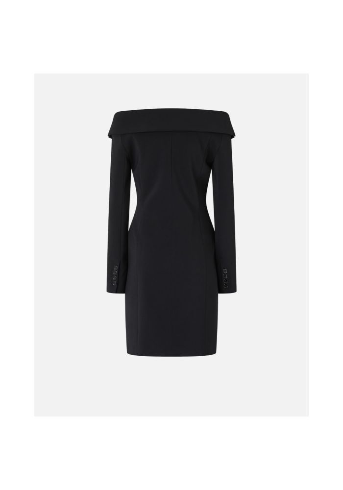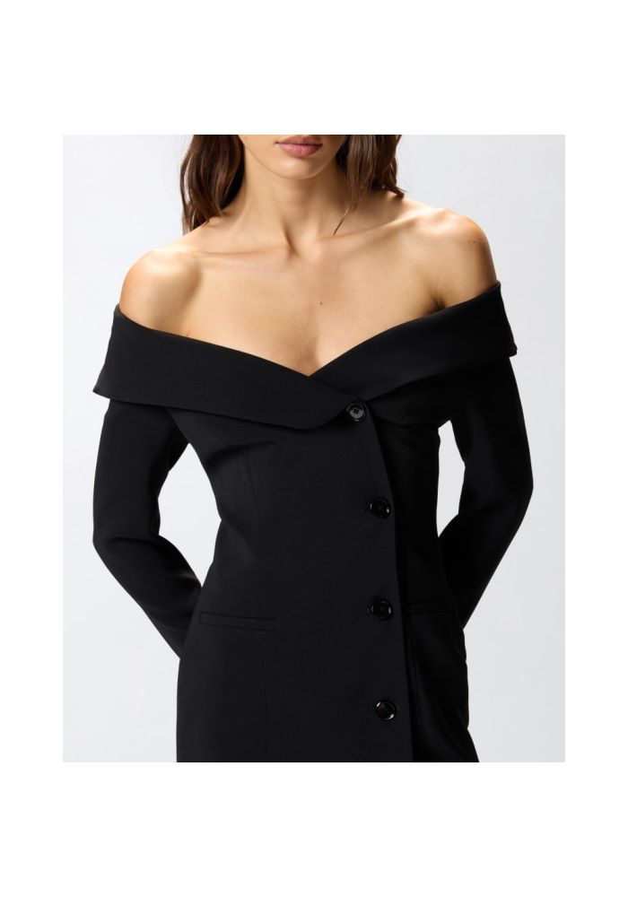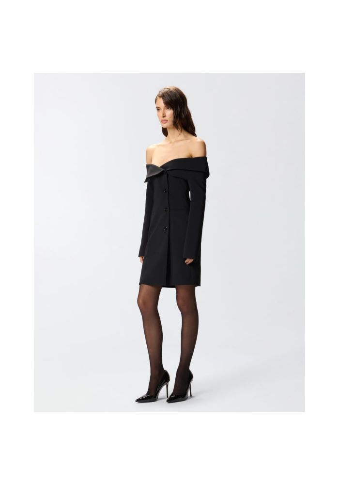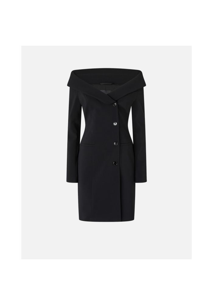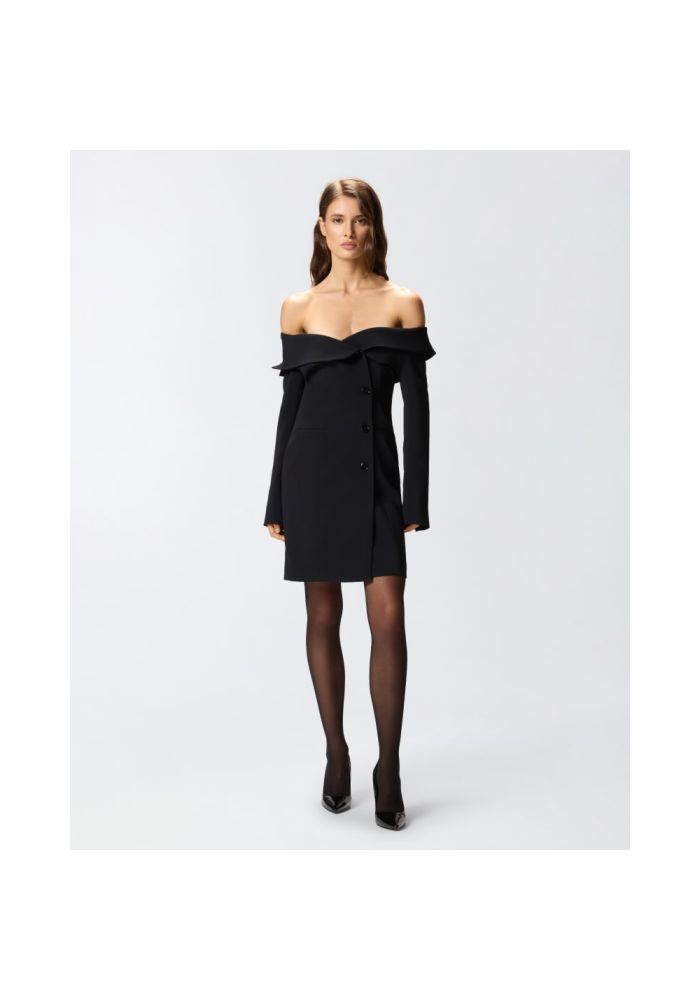 PINKO Pencil Dress in ROSEMARIE 106139A304Z99 Color applied long-sleeved dress, made of rubber cropped fabric that emphasizes the silhouette.The side buttons, buttoned cuffs, and lateral velvet pockets clearly refer to the design of the classic blazer, while the wide opening that leaves the shoulders uncovered makes the model completely feminine: The end result is a structured yet elegant look, which only PINKO knows how to create.