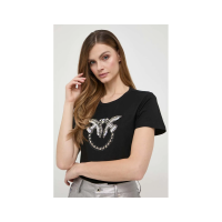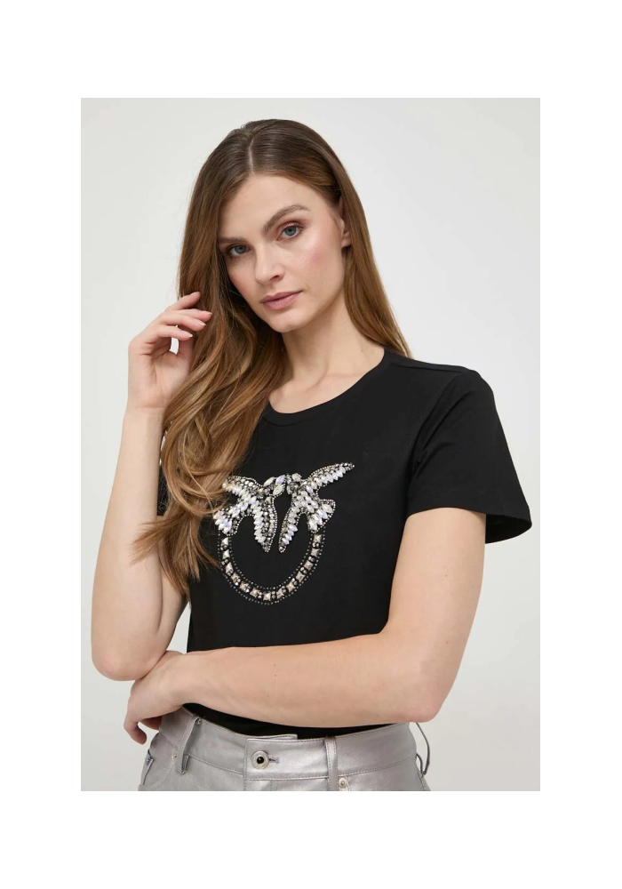 PINKO Blue Quentin T-shirt with love birds embroidery 100535A1R7 Z99 Black