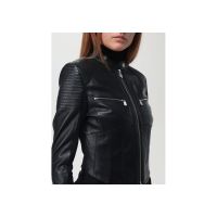 Leather bowman cut in biker style with technical rubber inserts made of biscuit fabric on the back and bottom of the sleeves.Little upright jackets with buttons, butt-style bushes, small pockets and cuffs with metal fur.Closed with a furnace on the front.100% SHEEPSKIN LEATHER 100%How can I return a product?
