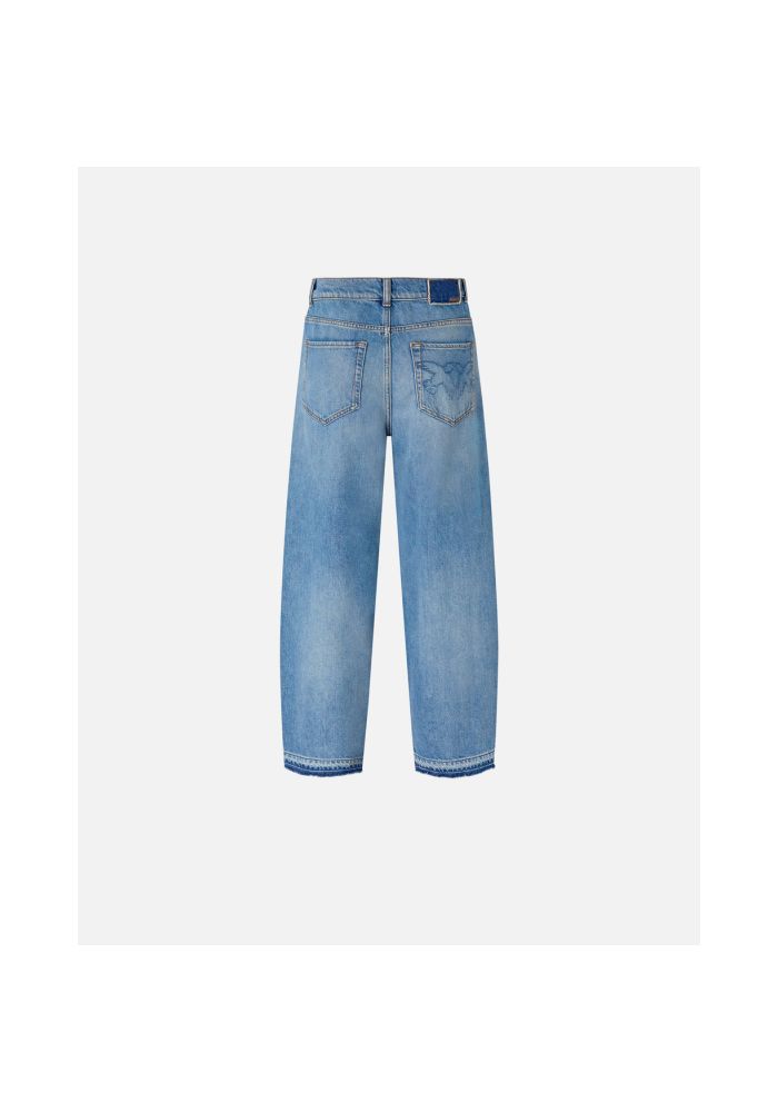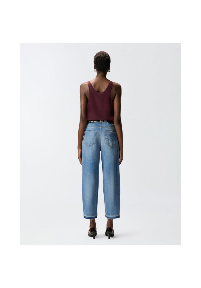 Πεντάτσεπο και χαμηλόμεσο τζιν παντελόνι σε γραμμή balloon με στρογγυλεμένα μπατζάκια στο επάνω μέρος και πιο στενά στο κάτω. Είναι κατασκευασμένο από denim από βαμβάκι και lyocell, σε μέτριο χρώμα με ξεθωριάσματα για εντυπωσιακή used όψη, και διαθέτει ξηλωμένο στρίφωμα στο τελείωμα για αποδομημένη εμφάνιση. Το πιο σκούρο χρώμα της πέμπτης μικρής τσέπης, της δερμάτινης ετικέτας στη μέση και του τελειώματος δημιουργεί ένα σύγχρονο παιχνίδι αντιθέσεων, με το αυθεντικό στυλ της PINKO, ενώ το εμβληματικό λογότυπο Love Birds ξεχωρίζει ως κέντημα σε μία από τις πίσω τσέπες. Φορέστε αυτό το τζιν με το ασορτί μπουφάν για ένα total denim look με μοντέρνο στυλ, ή με το αγαπημένο σας t-shirt για casual και χαλαρό ντύσιμο, τέλειο για κάθε περίσταση.ΒΑΜΒΑΚΙ 82% LYOCELL 18% - Φόδρα: ΒΑΜΒΑΚΙ 100%Πώς μπορώ να επιστρέψω ένα προϊόν;