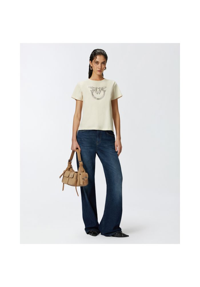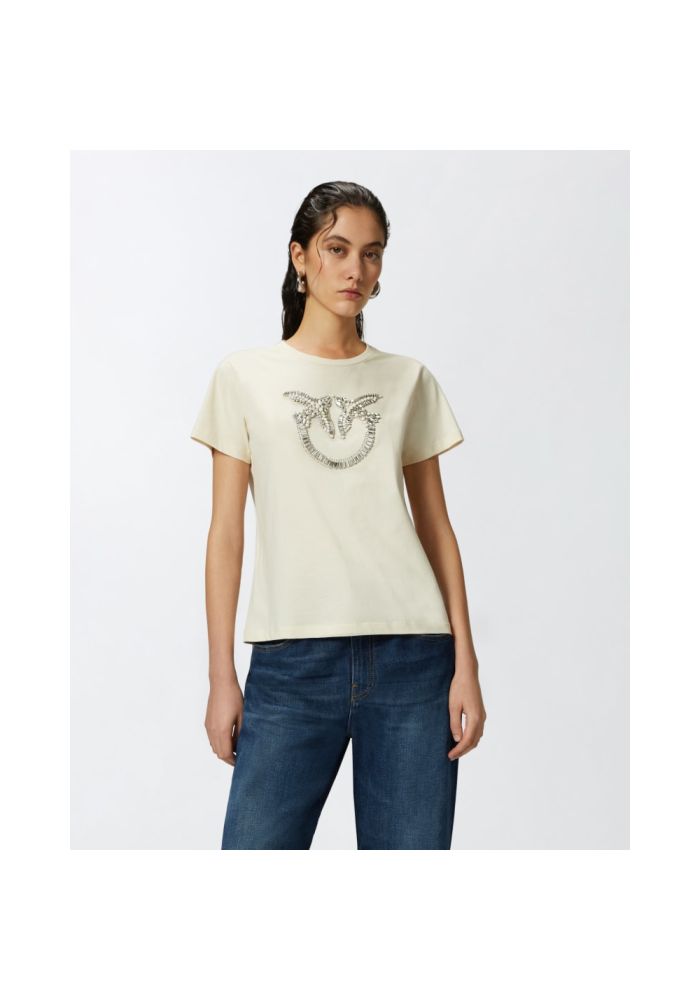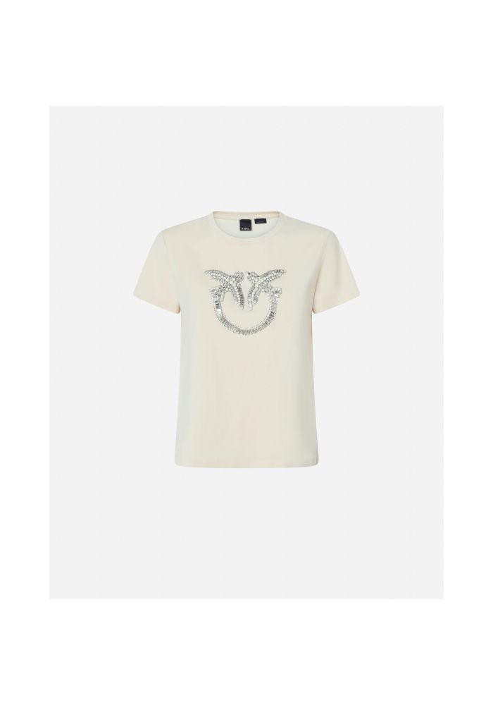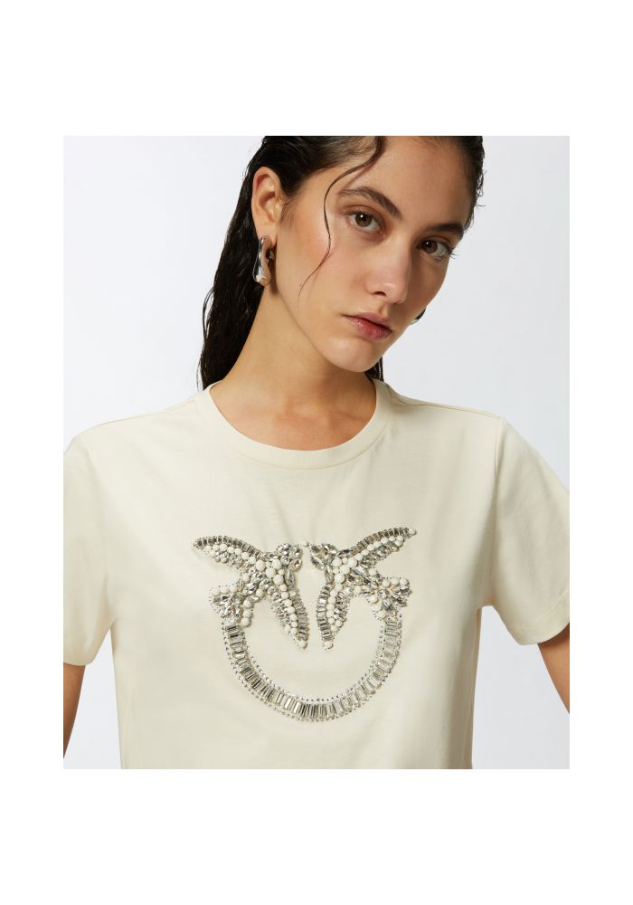 PINKO T-shirt with the embroidery of love birds Quentin creme 100535A24EZ12