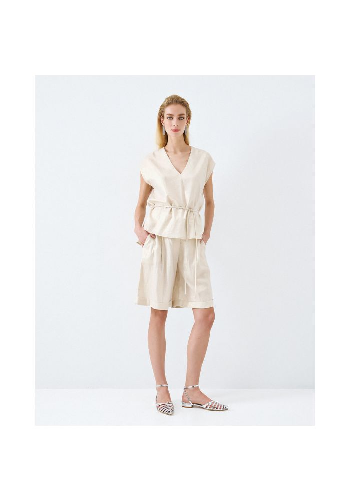 Access Fashion βερμούδα μεταλλιζέ με πιέτες Gold 63-5104-367
