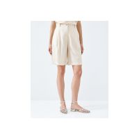 Κομψή βερμούδα σε μπεζ απόχρωση που συνδυάζει άνεση και διαχρονικό στυλ. Διαθέτει ψηλόμεση γραμμή με κουμπί και φερμουάρ μπροστά, ενώ οι διακριτικές πιέτες χαρίζουν κομψή εφαρμογή και ελευθερία κινήσεων. Το μήκος πάνω από το γόνατο και η ίσια γραμμή δημιουργούν ένα μοντέρνο και κομψό αποτέλεσμα, ιδανικό για καθημερινά αλλά και πιο προσεγμένα καλοκαιρινά looks. Συνδυάζεται εύκολα με πουκάμισα, τοπ ή σακάκια για ολοκληρωμένες εμφανίσεις.