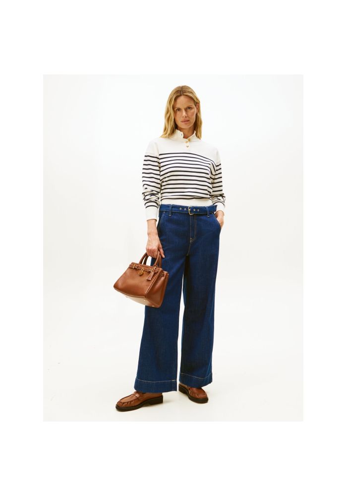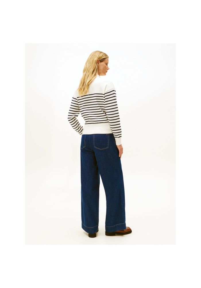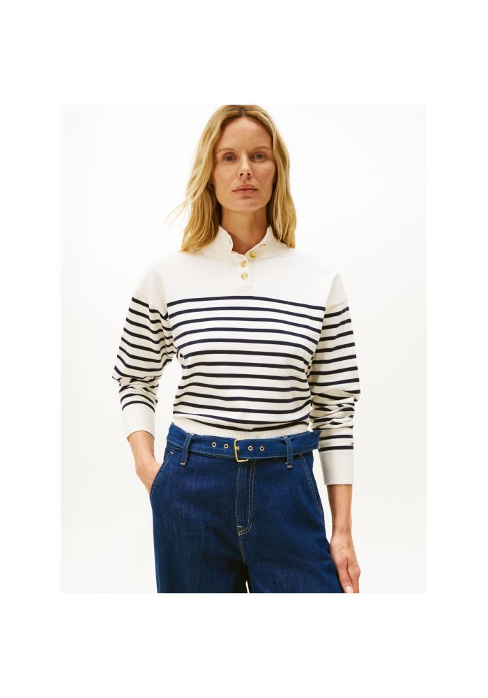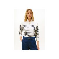 Tommy Hilfiger Γυναικεία ριγέ μπλούζα με κουμπιά WW0WW47467-0X2 Ivory