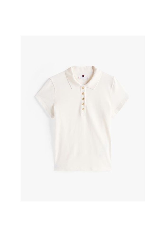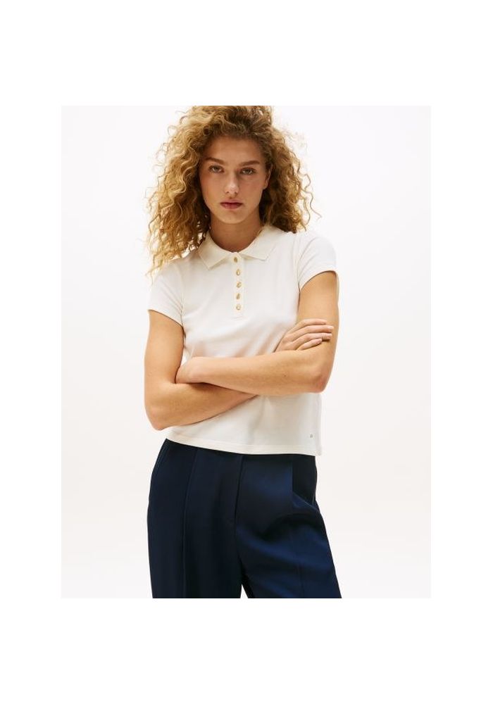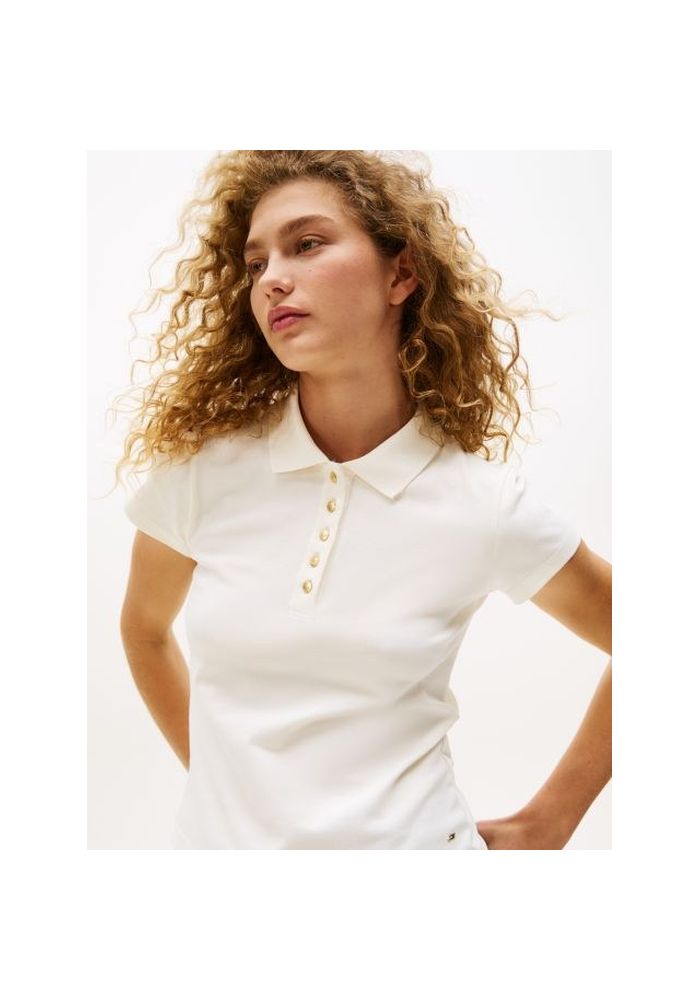 Tommy Hilfiger Μπλούζα Polo Slim με χρυσά κουμπιά WW0WW45768-YA8 Ivory