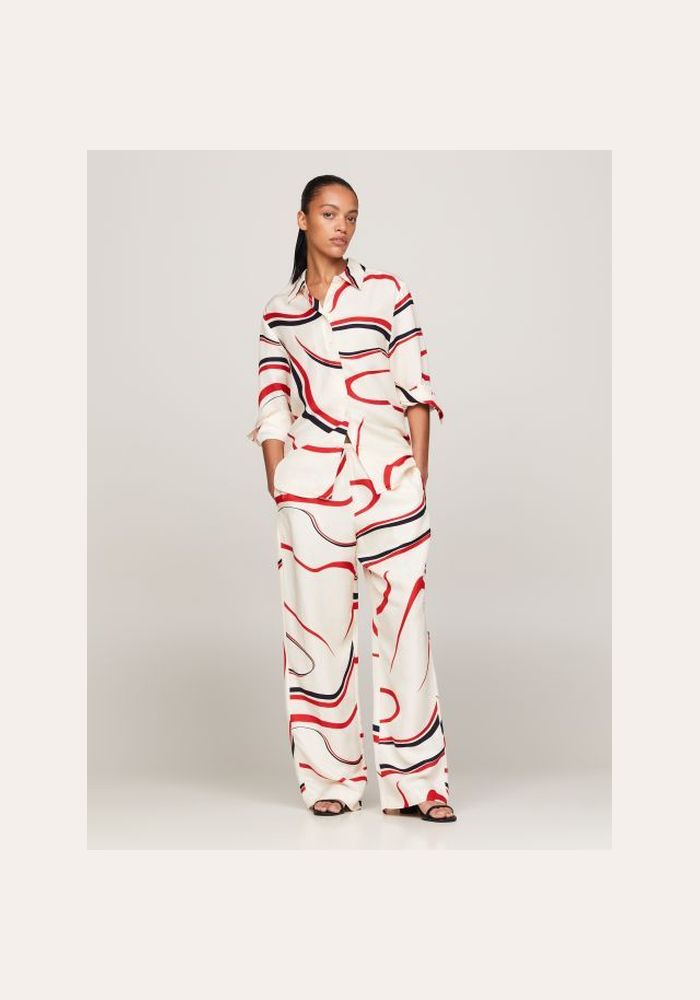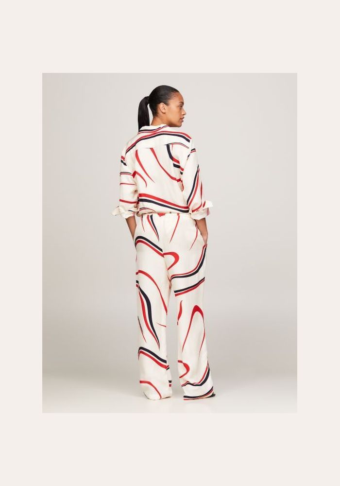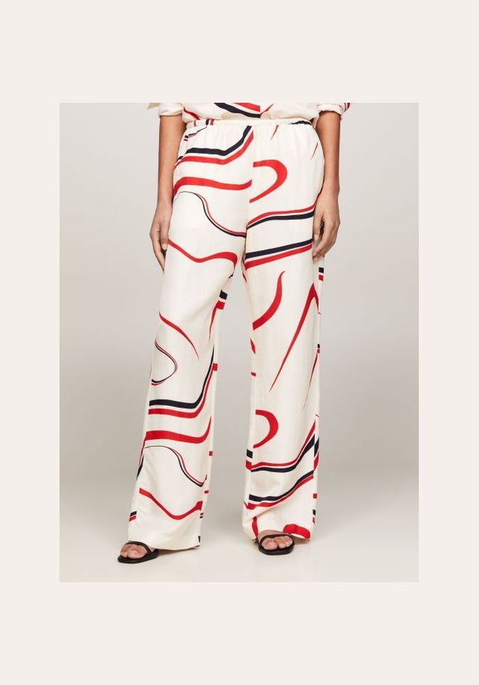 Tommy Hilfiger trousers with design viscose pull on pant WW0W41587 02R Big Ribbon Print/ Ecru