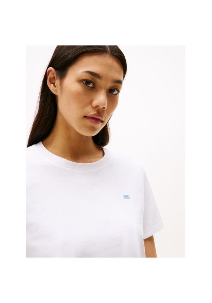 Tommy Hilfiger γυναικείο βαμβακερό T-shirt με κεντητό σημαιάκι στο στήθος για signature φινίρισμα. Διαθέτει κλασσική λαιμόκοψη και κανονική εφαρμογή. Ρίγα signature εσωτερικά στη λαιμόκοψη. Ύφασμα από αγνό βαμβάκι. Σύνθεση: 100% βαμβάκι.