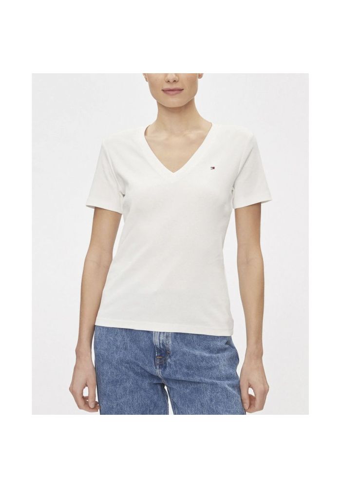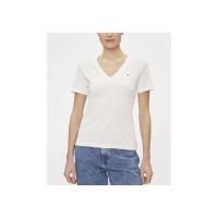 Tommy Hilfiger T-Shirt ρίμπ V λαιμόκοψη slimWW0WW40584 YBL Ecru