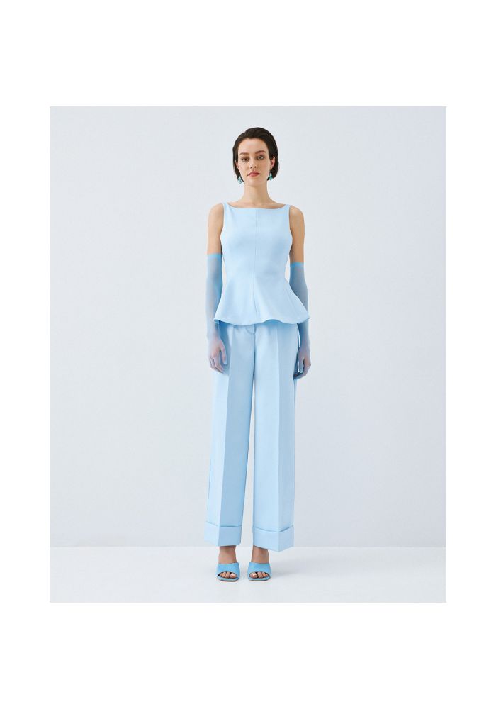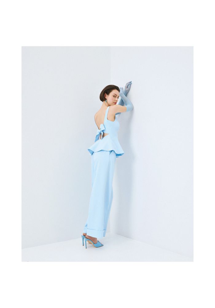 Αμάνικο peplum τοπ με τιράντες και χαμόγελο λαιμόκοψη. Διαθέτει ανοιχτή πλάτη με δέσιμο πίσω και κλείσιμο με φερμουάρ στο πλάι. Κανονική γραμμή Σταθερή εφαρμογή Τιράντες Χαμόγελο λαιμόκοψη Peplum Δέσιμο πίσω Ανοιχτή πλάτη Κλείσιμο με φερμουάρ στο πλάι