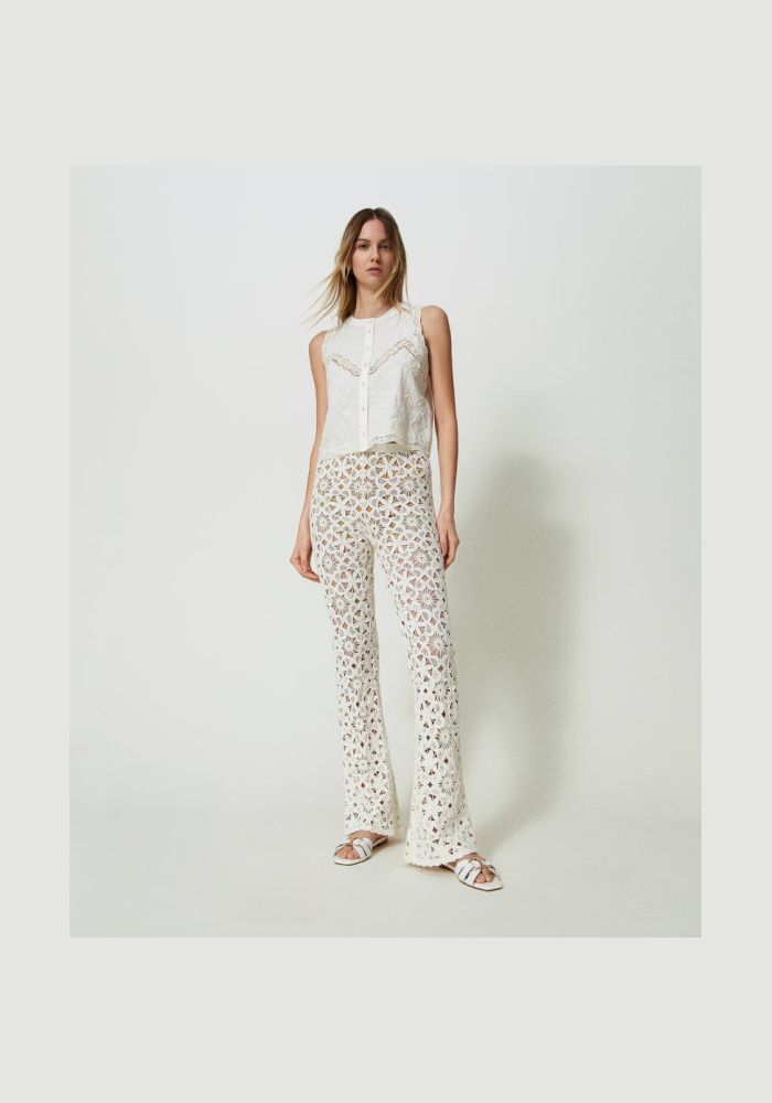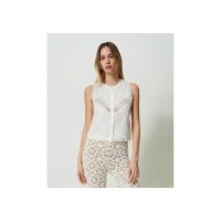 TWINSET Αμάνικο τοπ με φλοράλ κεντήματα 241TT2082 00001 White