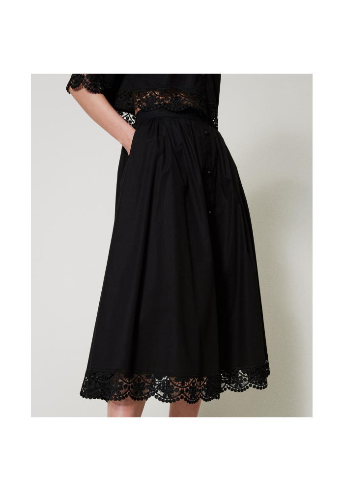 TWINSET Μακριά φούστα από ποπλίνα με δαντέλα 251TT2095 00006