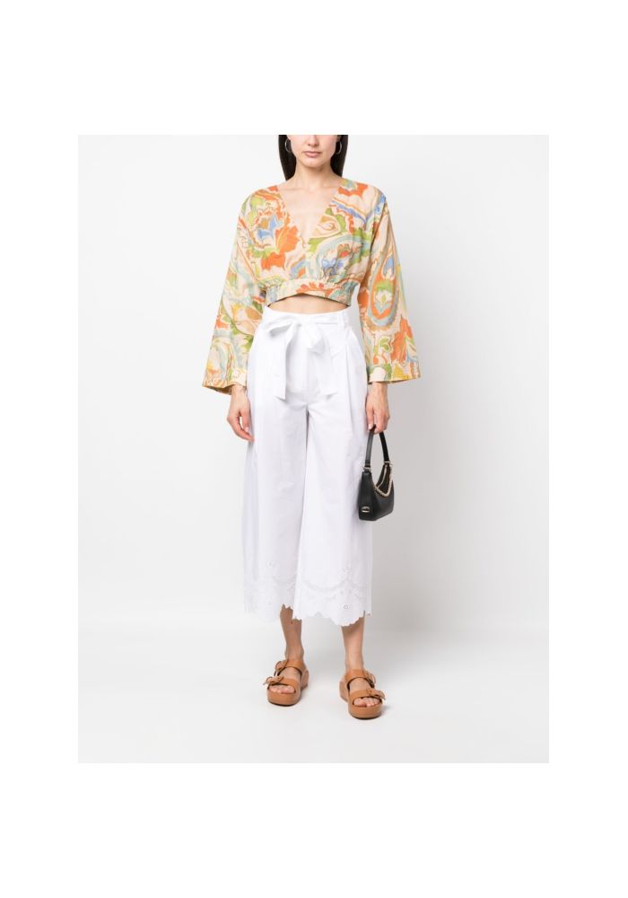 TWINSET παντελόνι ποπλίνα μέ broderie anglaise 231TT2305 00001 Bianco