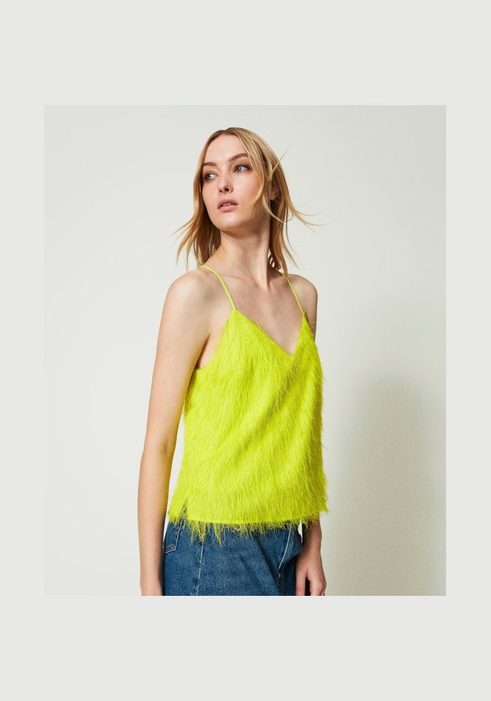 TWINSET τόπ με κλωστές πάνω σαν πούπουλα 241TP2434 04615 Light lemon