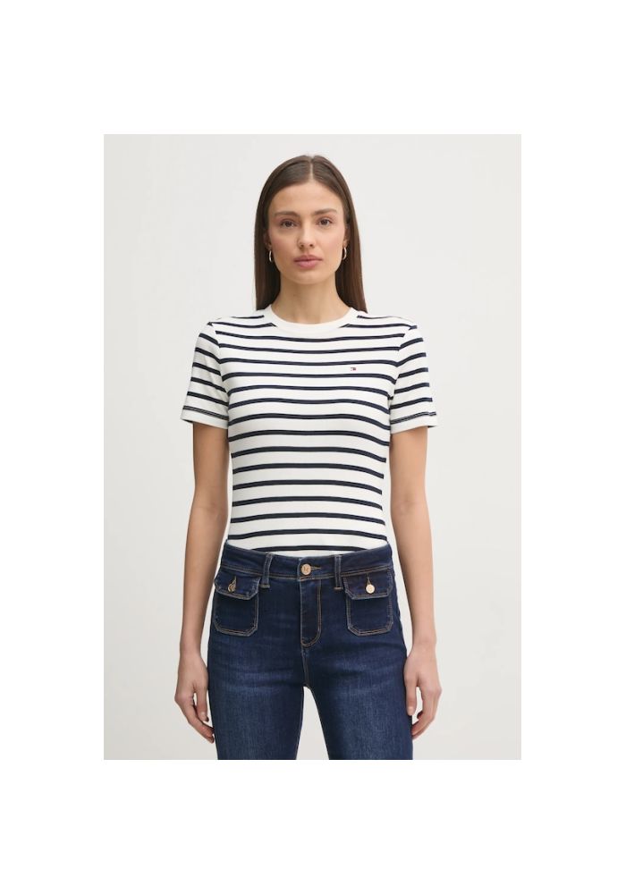 Tommy Hilfiger T-Shirt ρίμπ V λαιμόκοψη slimWW0WW40584 YBL Ecru
