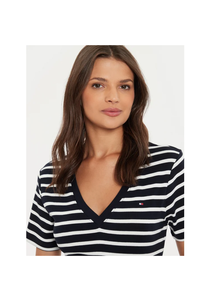Tommy Hilfiger Κοντομάνικη ριγέ μπλούζα με V λαιμόκοψη WW0WW40584 02C