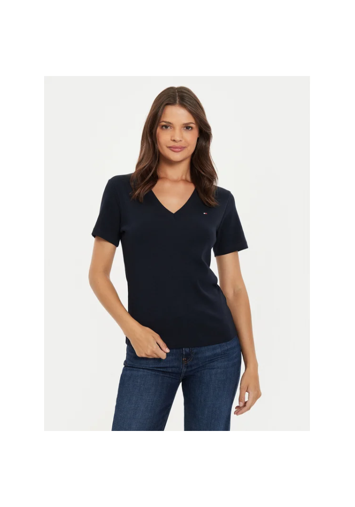 Tommy Hilfiger T-Shirt ρίμπ V λαιμόκοψη slimWW0WW40584 DW5 Desert sky