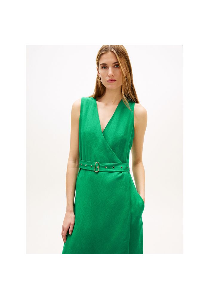Tommy hilfiger Φόρεμα μίντι με ζώνη από λινό μείγμα αμάνικο, κρουαζέ WW0WW48951MS3