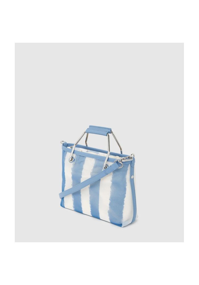 Γυναικεία τσάντα χειρός κατασκευασμένη από μερικώς ανακυκλωμένο βαμβάκι. Καλοκαιρινό, ριγέ σχέδιο με δύο μεταλλικές λαβές κατάλληλες για μεταφορά στο χέρι και αφαιρούμενο λουράκι χιαστί, συμπληρώνεται από ένα χαρακτηριστικό λογότυπο Karl Lagerfeld στο μπροστινό μέρος. Το ευρύχωρο εσωτερικό είναι εξοπλισμένο με μια τσέπη από καμβά. Μια απόλυτα κομψή προσθήκη στο καλοκαιρινό σας ντύσιμο.