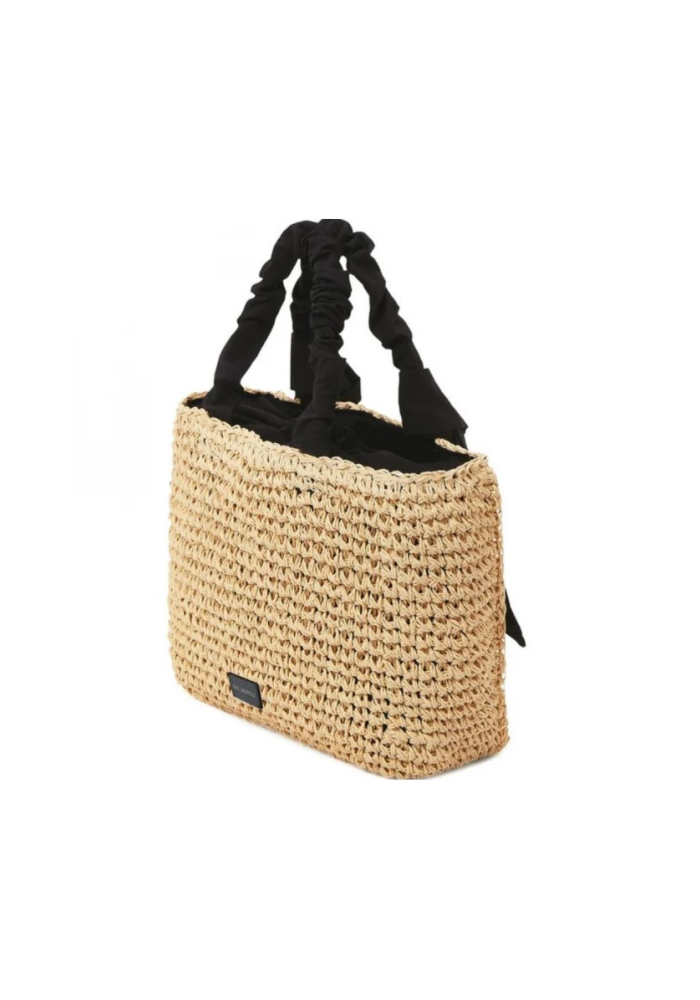Η ηλιόλουστη κομψότητα χαρακτηρίζει αυτή την υφαντή τσάντα θαλάσσης, όπου οι δομημένες λαβές συναντούν τα αποσπώμενα κασκόλ για αβίαστες αλλαγές στυλ.