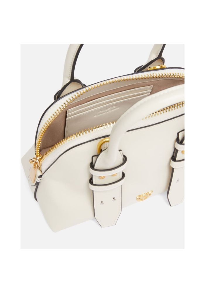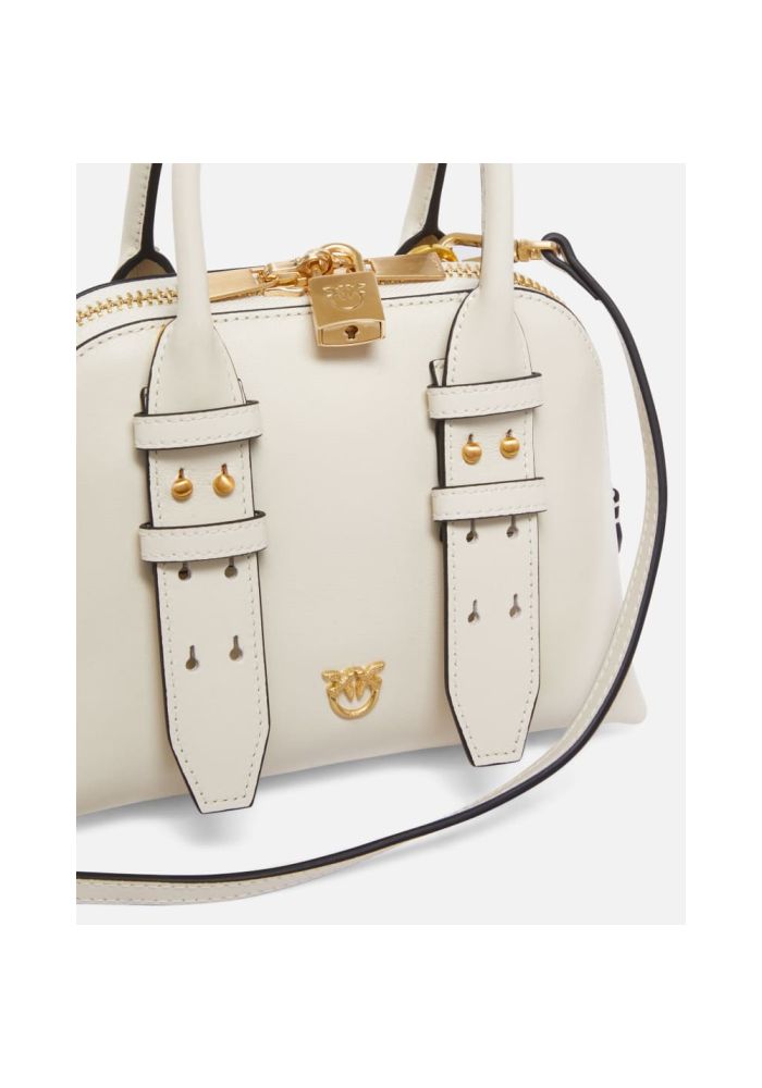 Τσάντα χειρός bowling Mini Escape Bag μικρού μεγέθους από μαλακό δέρμα, με βαμβακερή φόδρα και εσωτερική τσέπη στο τοίχωμα με θήκη για κάρτες. Το ρυθμιζόμενο δερμάτινο λουρί, καθώς και το διπλό χερούλι, που προσφέρουν τη δυνατότητα μεταφοράς στο χέρι ή στον ώμο, κάνουν την τσάντα εξαιρετικά εύχρηστη και πρακτική. Το επάνω μέρος κλείνει με φερμουάρ διπλής κατεύθυνσης και είναι διακοσμημένο με μια ξεχωριστή λεπτομέρεια: ένα λουκέτο με το εμβληματικό λογότυπο Love Birds, το οποίο ανοίγει και κλείνει με το κλειδί που περιέχεται στο δερμάτινο κρεμαστό διακοσμητικό που συνοδεύει την τσάντα. Ενεργοποιήστε την τσάντα σας PINKO: επαληθεύστε τη γνησιότητα του προϊόντος σας και αποκτήστε πρόσβαση στην εξατομικευμένη εμπειρία πλησιάζοντας το smartphone σας στο κέντημα Love Birds στην πίσω πλευρά της τσάντας! Σύνθεση: Δέρμα: ΔΕΡΜΑ ΑΓΕΛΑΔΑΣ 100% - Εξωτερικό ύφασμα: ΠΟΛΥΟΥΡΕΘΑΝΗ 100% - Φόδρα: ΒΑΜΒΑΚΙ 100% Μετρήσεις: Ύψος: 25 cm Πλάτος: 10 cm Μήκος: 20 cm